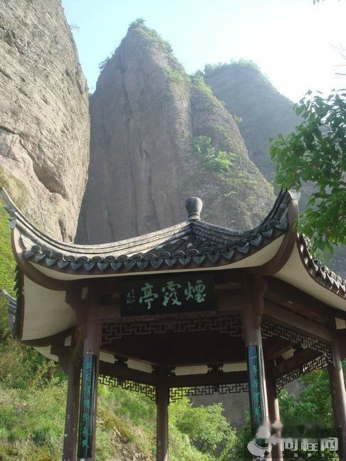 【霞客亭】:此处是近观江郎三爿石最佳的位置。1992年秋设“霞客游踪”景点,建霞客亭。亭内楹联称:“遍访名山独尊江郎奇幻,长思伟著共仰霞客风流”,上联吟哦徐霞客对江郎山的高度评价,下联表诉后人对徐霞客的敬仰之情