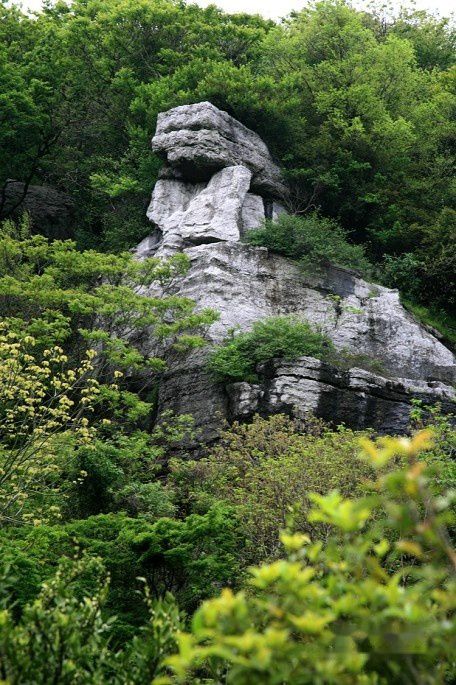 被誉为吴中第一峰的板壁峰:如用刀斧劈出的山峰在峭壁间陡立,峰顶更是如五指直插云霄,四周翠绿围绕、石面还有青苔和藤蔓。