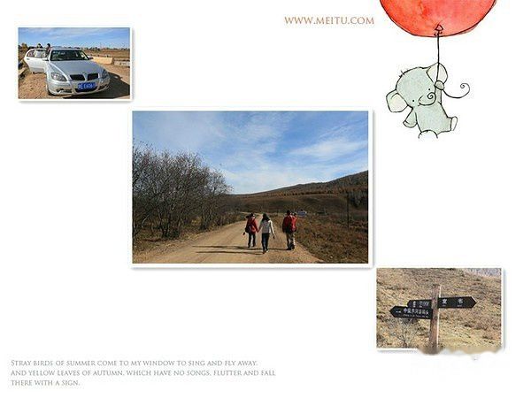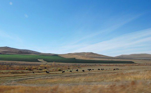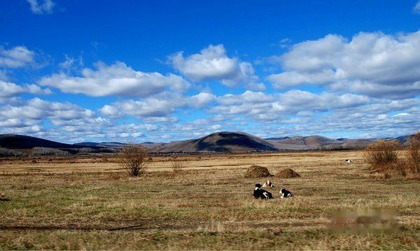 推门而出,晶晶冷哦(嗷嗷)!地上披着层白霜。主家早已起了,热情的主人向我介绍着园子里的风景:这是南瓜长廊(枯了哈。可以想象夏季时绿油油滴叶子、黄黄滴花朵儿、还有前不久还挂着滴一个个金灿灿的小南瓜(^o^)),这是甜瓜地儿(收完了哈)。。。倒是向日葵还留有一点残影,园子边一列不知名的花草也开得郁郁葱葱。信步走出院子,没风,和煦的阳光照在身上热乎乎暖洋洋滴,空空的路上偶有车辆驶过,大妈赶着一群白鹅从我身边摇过,押阵的小狗好奇地打商量着我这位陌生人,我挥挥手与它嗨下却把它吓跑了。。。这一切是那样的熟悉,甚儿那淡淡的牛粪味都瞬间变得亲切起来,仿佛回到了儿时的乡村,只是那一堆堆压好的草垛让我醒起这是草原。