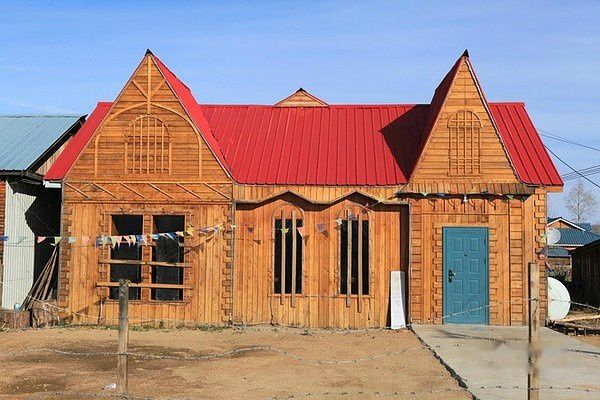 这座是纯原木制成的木刻楞,造价也不菲哦五十万现大洋