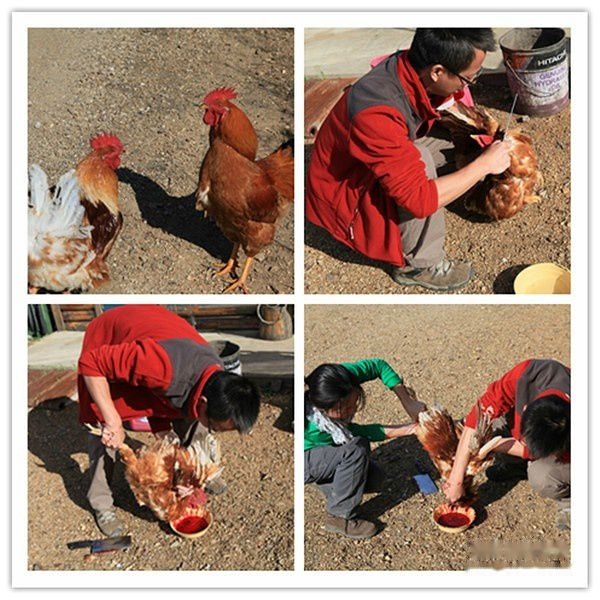今天是中秋,理所当然滴我们过节喽~~~在村口七十大洋买了只大笨公鸡,摇阿摇和我们一起摇到了驻地。主家说不会宰,我倒!我倒倒倒!!!还是我们队长,捋捋袖子,操起菜刀,三下五除二利索地就把鸡给收拾了,(崇拜阿~~~,这男银,给叮叮调教滴~~~可比上次额济纳大朱麻利多了)。有图为证 公鸡就是这样被收拾滴