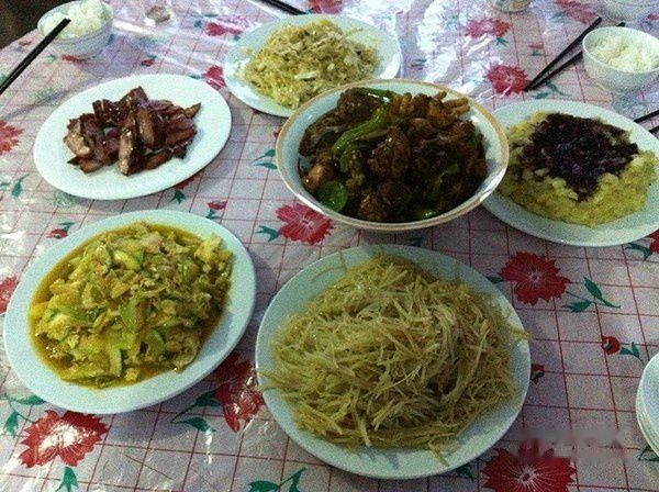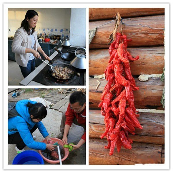 中午木找着吃饭的地儿,凑合着用干粮对付了些,这刻儿早已饿得心慌慌,钻进厨房,锅里煮着我们的晚饭,阵阵香气飘来,更饿了。。桌上有煮好的红薯,大凡能称为吃货的通常除了勤劳的胃以外,还具备了不薄的脸皮和香甜的嘴(*^--^*),果然不用片刻我们仨便吃上了,真甜!不信?你来尝尝~~~半个小时以后,我们的晚餐终于上桌,耶,吃货们又可以享受了。。。风残云卷,一锅饭眼睁睁着就见了底,急得隔边车师傅——一位high大叔直喊留点给我们!!(吃太快了,等想起拍片已经又只剩下些盘子了。。。)