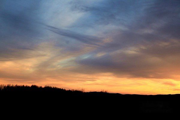 惦记着拍日出,六点不到就醒了。老冷的天,斗争了好半天,最后还是决定:去!(这帮懒虫虫们继续在被筒里窝趴:羡慕嫉妒恨呐)。全付武装好走出大门,看见有辆车呼啸而过,驶向昨天看日落的山头,不由得笑起来:日出是在俺家对面的山头,你跑俺家右边的山头能看到啥?!(俺家位置晶晶好,出门右拐看日落,出门对面看日出,3~5分钟就能到达。)