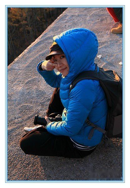 慢悠悠地晃上山顶,嗬,已经有不少人了。冷!早了点,可以再窝趴一会呵呵。慢慢等待日出。。。