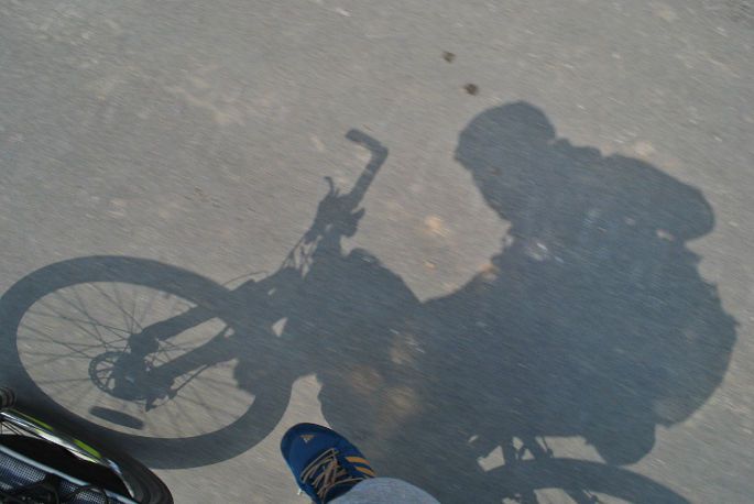 紧骑快赶终于又看到了老人。平行聊天骑了段时间,知道老人是从黄楼骑过来的,两个孩子都工作了,试探着问了句,大娘今年60几了?回答吓我一跳,74了!厉害@!大娘很热情,跟我说这周围只有一个叫簸箩林子村里还有个小学,并且给我详细说明了路,快到大娘村时一直邀我先回家吃点喝点,我说我带着,谢过大娘后向着她所指的那个村落骑去。