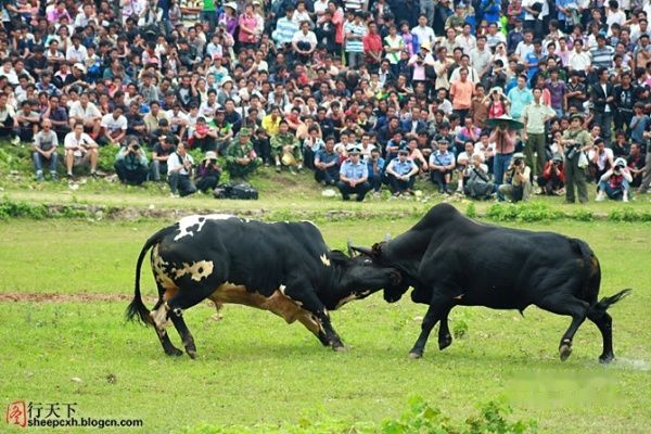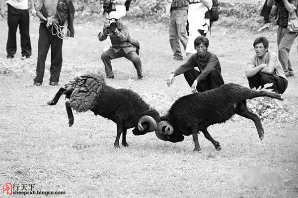 斗羊的过程则和斗牛完全不同,充满着瞬间的爆发力。只见两羊相对而立,慢慢后退数米,沉默片刻,突然间快速冲向对方,嘭的一声闷响,脑门相撞。如此反复数次,额头皮开肉绽,鲜血直流,甚是惨烈。如果没有人阻止,还会一直斗下去。终于见识到羊脾气的厉害。原来所谓的“牛脾气”根本不算什么,羊脾气才是真的倔,破釜沉舟一条道走到黑。这确实是羊的本性,人们都误解了。
