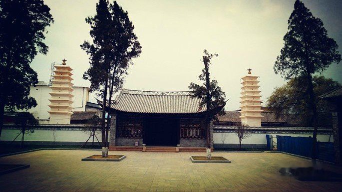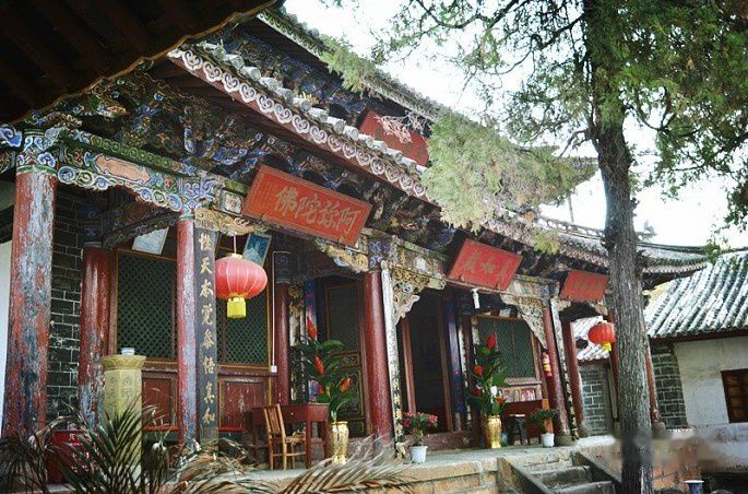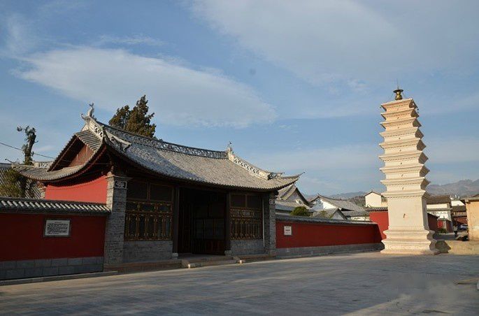 圆觉寺的大门在修,门前的两座500多年的白塔被松柏完全包围着,神秘而悠然。圆觉寺建于明成化年间,蒙化土官左氏所建,明万历、天启、清康熙年间重修。寺依山势,有山门、弥勒殿、真如殿、大雄殿及两侧观音殿、伽兰殿、文昌宫、三官殿、准提殿等建筑组成。为大理州文物保护单位。大殿古朴庄严,很有观赏价值。