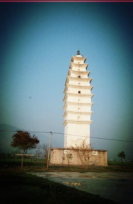 回来休息会儿,1:30先来到太阳宫,门前的两座白塔就是大理三塔的翻版,发现这大理地区的白塔全是这种造型。院门锁着,问了门前干活的人,告之从工地的围栏进去,那分明是一堵高墙,没有门呀?迟疑地过去,进了围栏一看,哇!原来高墙上有一个大洞,一定是这些施工的人图方便敲开滴。