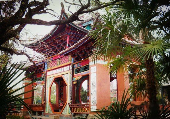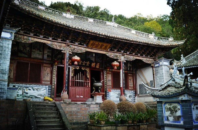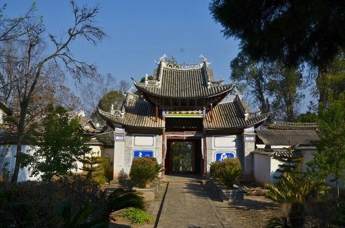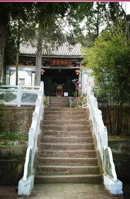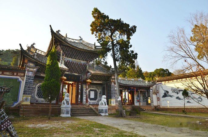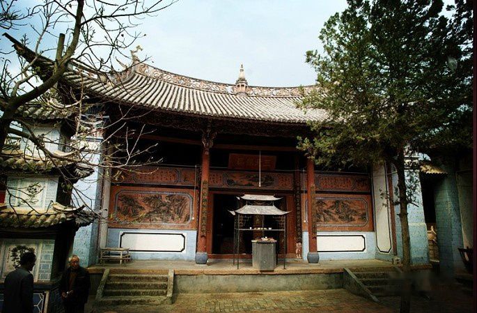 先到玄龙寺,整座建筑以山门及大殿最佳。山门为单檐歇山顶牌楼式样,宽三间,前后檐下施以如意斗拱,斗拱做工十分精细。大殿建于2米多高的台基上,单檐歇山顶,整个建筑气势雄伟。1981年公布为巍山彝族回族县文物保护单位。