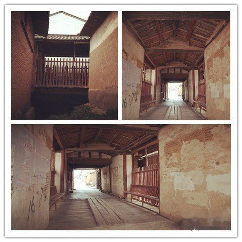 找了辆三轮车到西门吊桥,也叫云龙桥。当时和之后一直以为自己找错了,资料上明明写着是座吊桥,可眼前的却是座廊桥,非常古旧,两边已被房屋占满,几乎看不出桥的模样。旁边在大修土木,不知这个工地建成后,这桥也许就更看不见了?我走进去,桥面是用厚厚的木板搭成,两边有美人靠,上面有屋顶。真是不知从那个角度来表现这座廊桥?最后下到旁边的臭水沟里,勉强拍了一张可以为它验明正身的片片。