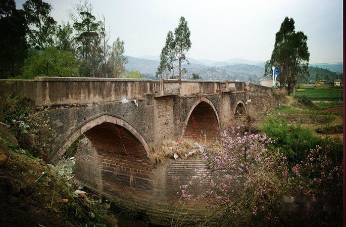 在蒙化广场休息了一下,感觉这儿应该离永春桥是最近的方向,便找了个三轮车,这个车夫不错,知道有个古桥,15元送我们过去,一个很古老的三孔石桥,横跨西河,又称西河桥。始建为木桥,年代无考。明万历13年,由进士张烈文改建为石拱桥,后被水冲毁,清道光13年重建。为砖石半圆翻拱三孔石桥,全长34.7米,宽4米,是县城通往西部四乡及昌宁、凤庆县的主通道,也就是茶马古道。如今此桥还在发挥余热,那超重的卡车真不知那天就会把它压毁?