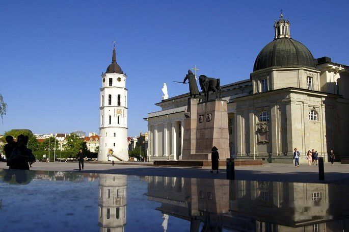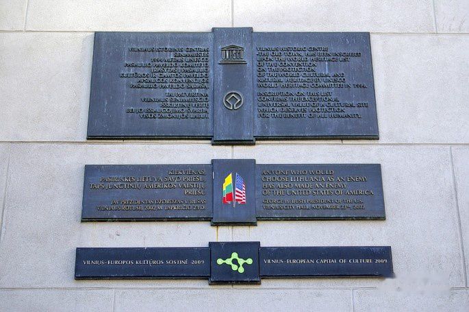 也是立陶宛重大历史事件的发生地:教堂广场上镶嵌有一块印有两只脚印的地砖——1989年8月23日,为争取自由独立,波罗的海三国近200万民众,手拉手,从这里开始经里加到塔林组成一条650公里的人链举行示威,最终脱离原苏联而独立。