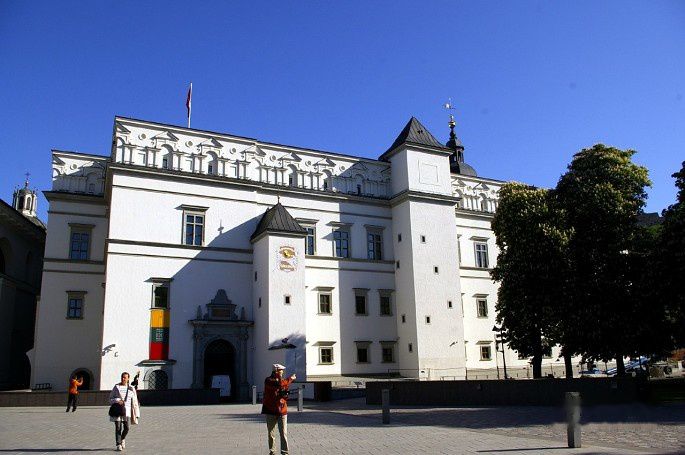 紧邻大教堂的是立陶宛大公宫博物馆(大公宫始建于15世纪,1801年被拆毁,2002年在原址复建),广场上的雕像是“格季米纳斯骑士”,早期立陶宛大公,当初就是他决定在此地筑城并定都的。