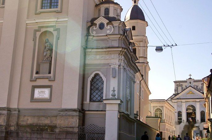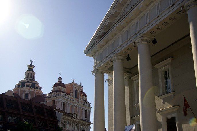 离圣安娜教堂不远,是维尔纽斯市政厅和圣卡济米拉斯教堂(卡济米拉斯,立陶宛王子,为信仰天主而放弃王位,被封为圣徒)。