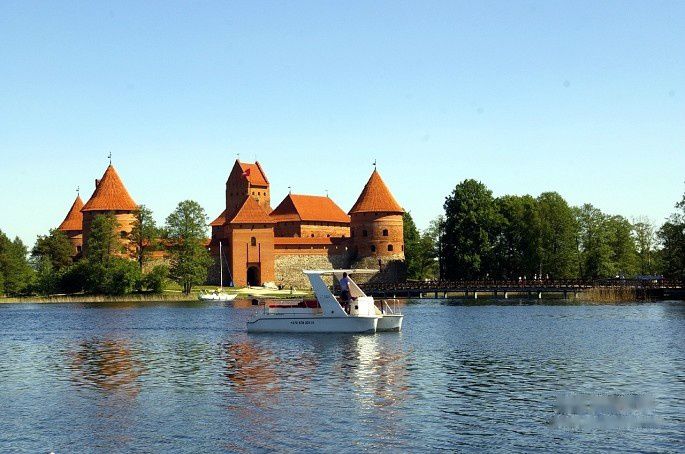 离开旧城,驱车来到离城20多公里外的特拉凯古堡。城堡建筑于加尔瓦湖的湖心岛上,仅一座长桥与岸相连。