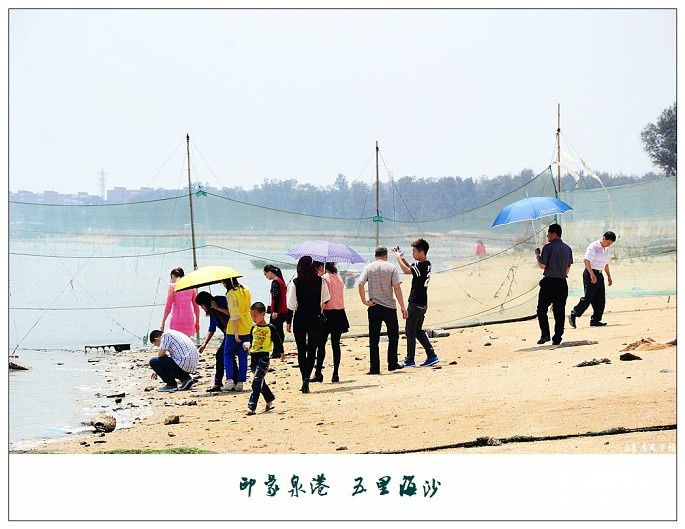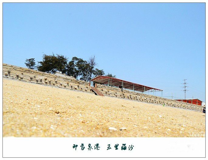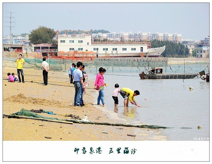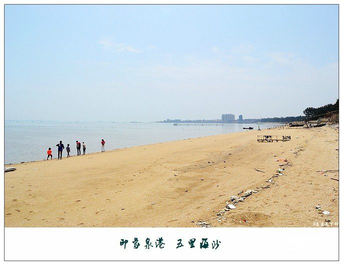 五里海沙是一片环海湾的天然沙滩,地处湄州湾南岸,是连接峰尾港与后龙港之间的一处沙滩,周围环绕着大片茂密的防护林,因其沙滩长度足有五里之长而得名为“五里海沙”,风光迷人,是泉港众多海岸线中最美丽的一处,素有“泉港的北戴河”之称。