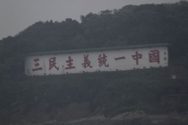 可以清晰地看到“三民主义,统一中国”八个白底红字,让人觉得这一切虽近在咫尺,但却又遥不可及。