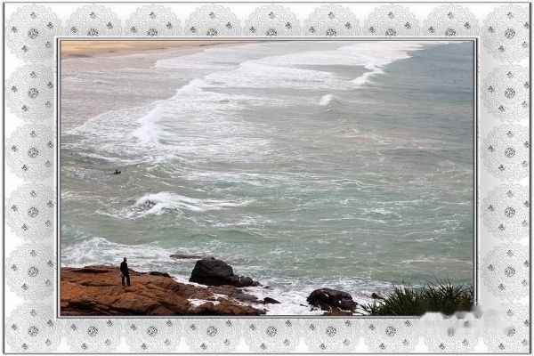 正午的阳光,在盈盈晃动的海水上撒一层碎银,映着碧蓝如洗的天空和一望无际的椰林,咸中带着甜味的海风沁入寸肌,连呼吸也变得甜美酣畅。沙滩像银丝带飘向大海,打破海岸柔媚流畅的线条,绸蓝得化不开的海水中兀地伸出一只黑色“触角”。海水激起怒涛,挟着砂粒和咸咸的苦涩扑向“触角”,在黑黝黝的礁岩上撞击、碎裂、消散,周而复始,不懂倦怠。