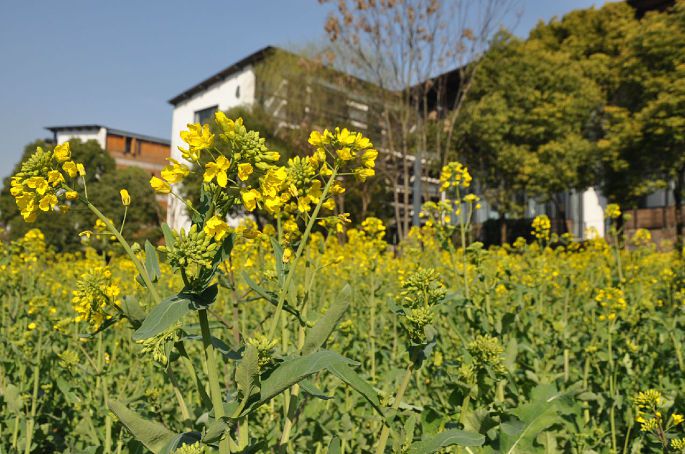 一个月前种下的油菜花,现在已经能够放眼望去一片暖黄,等时候再甚会更佳。