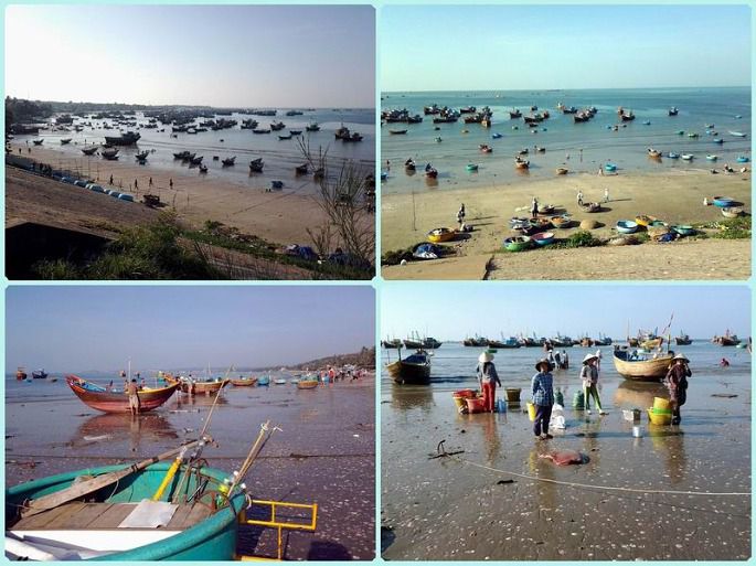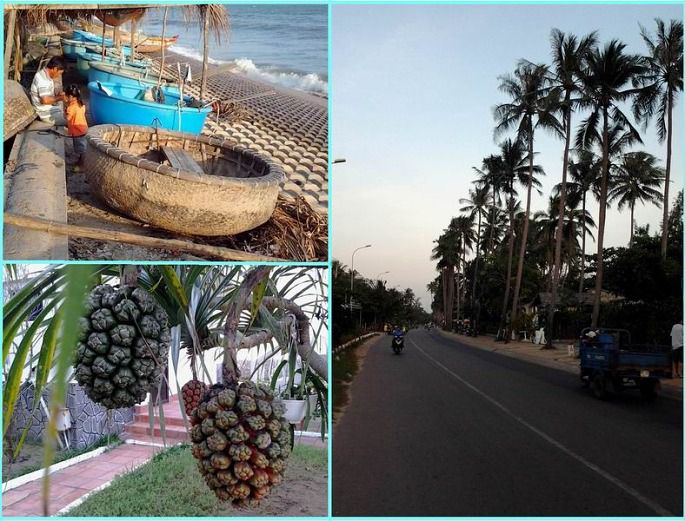其实,美奈不大,只有一条主干街道,一条不宽的路,双车道吧。路边是高高的椰树,树叶随海风飒飒响。道路靠海的一边有酒店、商店或者食摊,越南的土地是私有制,谁占领了海滩谁就拥有了财富。道路的另一边也是酒店、士多或者食摊。美奈的西边是渔港,一般游客多居住在中区。美奈的东边是高档的酒店和海滩娱乐,还有一所海上滑翔学校,很多风筝爱好者以及冲浪爱好者也把这里当做了根据地。