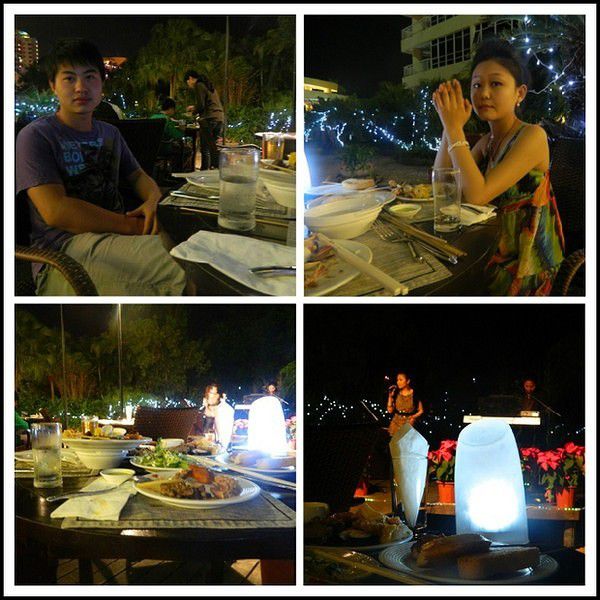 晚上:回去休息了会我偷偷预约了BBQ,门市价挺贵的哦。本来想享受一下5星级的待遇和这种烛光露天还有歌声的氛围?~~~陶醉在这浪漫的夜色中!