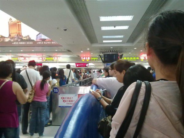 换完钱就去过关了。好多人啊。我们还特意选了个周一过来。哎呀呀,像港澳这种购物城市,应该是不论什么时候都那么多人的。澳门人还过珠海买菜,他们有专用通道,现在还有指纹过关,很方便的。内地人就过去买生活用品电子数码,人来人往的。