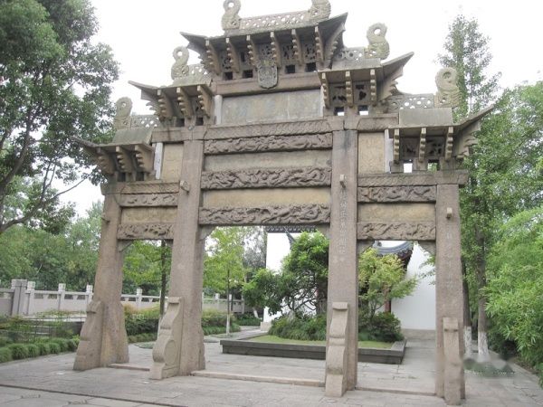 清乾隆十二年建的节孝坊。上海地区唯一修复完整的古代三门石雕牌坊,从闵行老街移来。