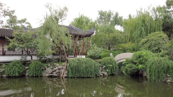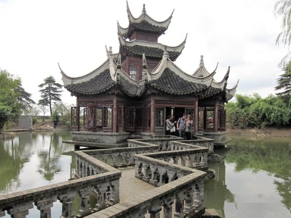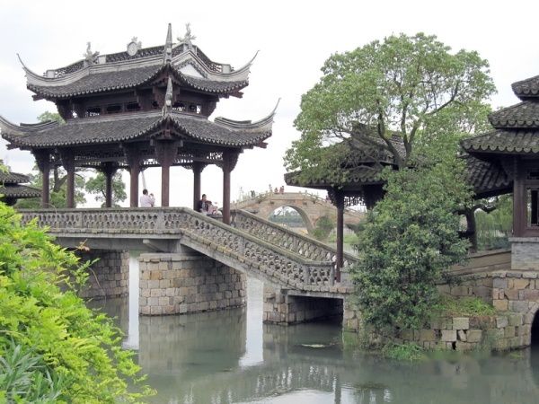 从古藤园出来,沿临沧路继续向南,到江川路转弯向西,大约10分钟车程,就到了韩湘水文化园。这里是黄浦江上游,不远处就是上海水厂的取水口。这里的三千村民为了上海市民的饮水安全,搬迁到别处居住,在这块土地上建造了一个以水为主题的生态园林。公园占地400亩,沿着游览线路走一圈,要2个小时左右。古树、古桥、仿古建筑是公园的三大特色。一进公园大门,就可以看到镇园之宝--千年古樟。这棵千年古樟是从湖南迁来的,颈围近6米,要4个人才能合围。迁来时为便于运输,削去树冠。据称,若干年恢复后树荫可覆盖500平方米。园中还有百年以上的古树600余棵,都是从全国各地迁来的。园内有人工湖,湖水与黄浦江相通。蜿蜒的河道上座落着三十几座明清时期的古桥梁,令人目不暇接,惊喜连连。其中韩湘桥是上海仅次于朱家角“放生桥”的五孔石桥,站着桥上,凭栏临风,饱览园中美景,令人心旷神怡。园中建筑多为云贵地区傣族风格的仿古建筑,但有一处苗族吊脚楼,是从贵州山区一大户人家移建于此,值得仔细欣赏。