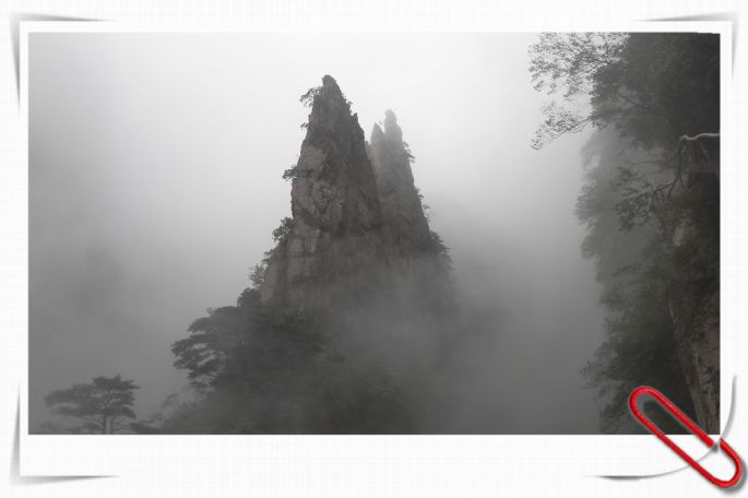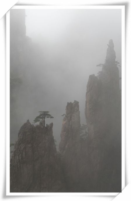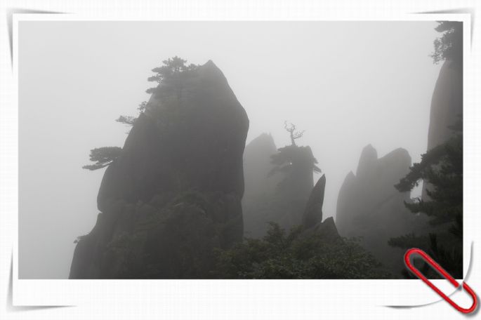 2、“飞来石”放在后面,原先的打算是看完“飞来石”后,就返回到 “光明顶”看日落,可惜雨天。后来就改去“步仙桥”,由于当时雨还没停,只走到“白玉溪”,不过,在此处,也见到了类似张家界风光的美景,尽管不久雨雾又来了。
