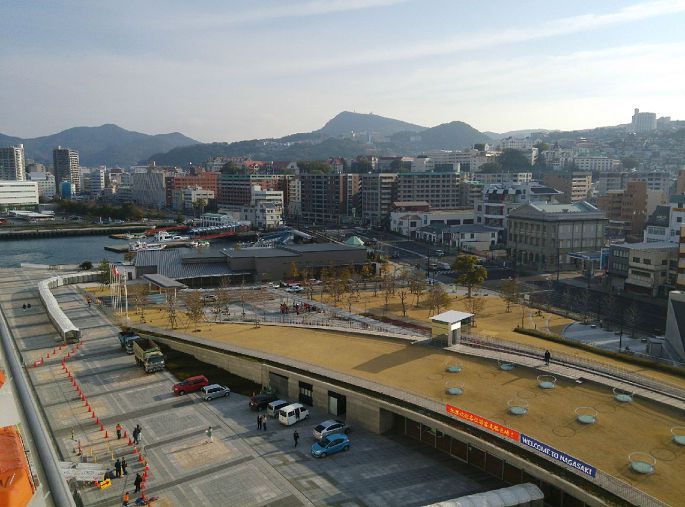 早上通知我们下船的时间挺晚的,差不多是9点45分。我依旧睡了个懒觉,醒来的时候妈妈已经吃完早饭回来,告诉我,长崎已经到了。