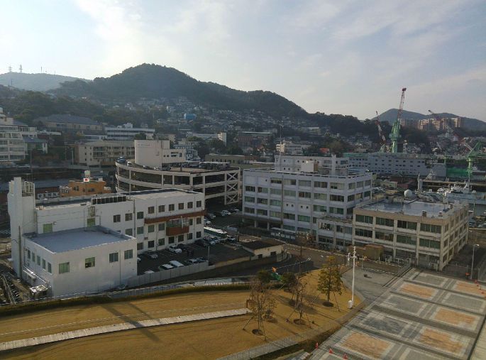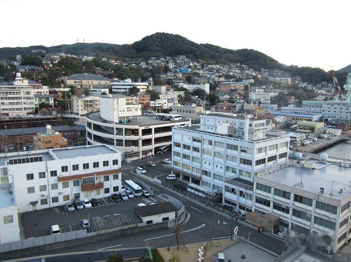 早晨的长崎市沐浴在一片和熙的阳光里。
