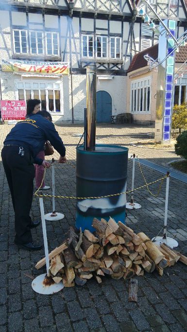 再回到原先的广场,就是免税店旁边。有个炉子在烧火,旁边还有柴火。