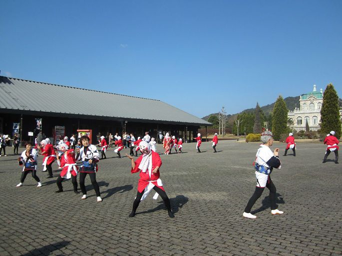 广场上还有一些老人家在跳一些不知名的传统舞蹈,有点像绫濑遥在《萤之光》里面跳的捕鱼舞。