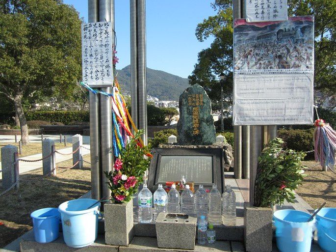 因为原爆缺水,为了抚慰那些亡灵,献上一杯水。