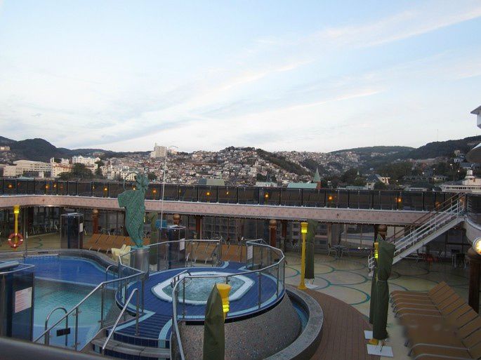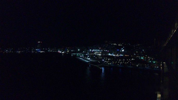 回到船上饿了先去自助餐厅搞点吃的。吃着吃着天就黑了,没有看到落日。长崎的夜景也并不如上海漂亮。
