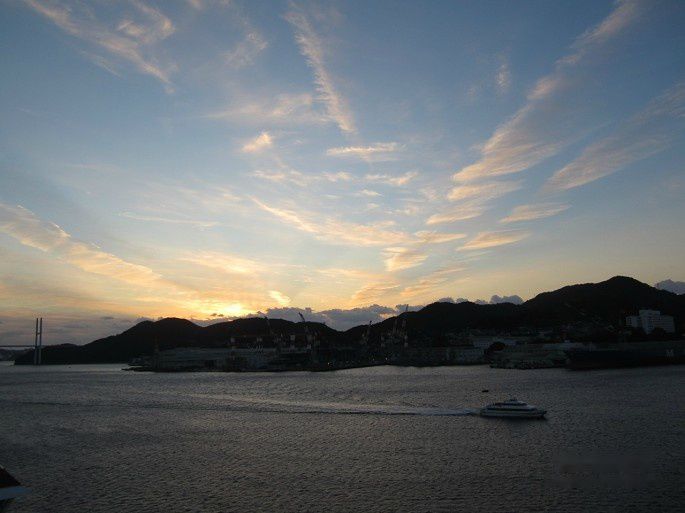 天色落幕的时候,我们缓缓驶离了长崎港。