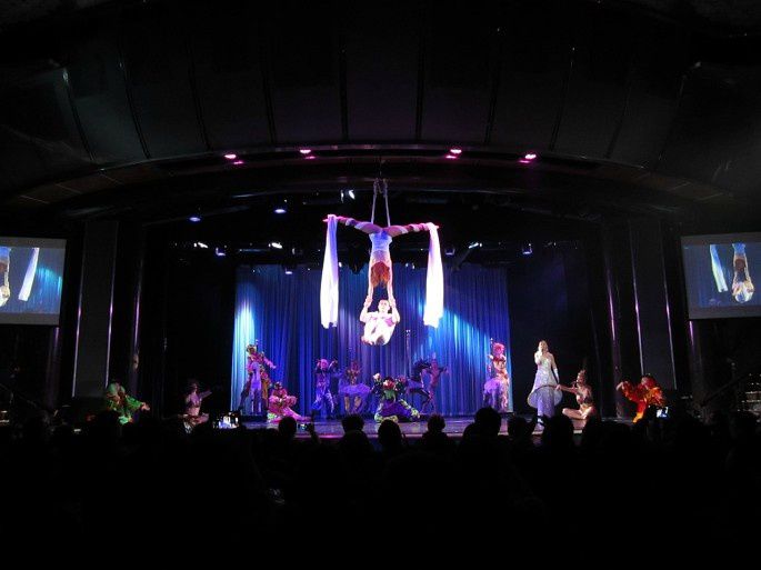 吃完早早回到卡鲁索剧场抢位子,晚上继续有节目,今晚是杂技。可能是一天玩得太累了,一边看一边睡着了。