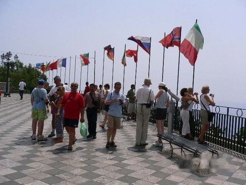 西西里岛是意大利南部一个大岛,位于地中海要塞,历史上曾经受到多个民族的统治,所以这里有希腊,阿拉伯,德国,法国,西班牙,罗马,拜占庭等民族的文化遗址和民情风俗习惯。我们是驾车旅游西西里岛,我们是在7月24日从卡塔尼亚市出发,第一站是观光埃特纳火山,我们按地图上的公路路线上了火山腰,一路上到处看到一片片被火山喷流出来留下黑黑的礁石,还有被火山灰淹没房子,到了半山腰我们改坐观光火山吊车到了山顶,山顶比较冷,所以我们穿着借来大衣,再坐山顶上越野车到火山顶上看冒烟的火山口,埃特纳火山是海拔3340米,山下是夏天这里好像冬天一样感到好冷,风好大,我们在火山口看到冒烟的活的火山,反正看到有冒烟的地方都是火山口,如果遇到火山口活动厉害的时候,就要封山,不会让旅游客上山观光。第二天我们驱车去西西里岛省会巴勒莫,在城里我们观光了四首歌区,是在十字路口四座房子角墙壁上有巴洛克式雕塑,还有裸体雕塑广场,还有阿拉伯风格,诺曼底风格两座代表性教堂并肩而立在PRETORIA广场,诺曼底王宫。然后我们驱车到西西里岛最漂亮的海滩桃尔米纳,第三天观光了桃尔米纳墨西拿门,4月9日广场,还有建于公元3世纪的希腊歌剧院,这里经常上演精彩的歌剧和意大利选美,还有美丽岛,海滩,27日我们离开了西西里岛。西西里岛还有许多景点值得观光,AGRIGENTO保持20多座的希腊神殿,还有SIRACUSA公元5世纪的希腊歌剧院都很是著名历史古迹景点。