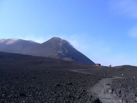 那个小房子是火山顶上唯一的酒吧,也是下山车站。