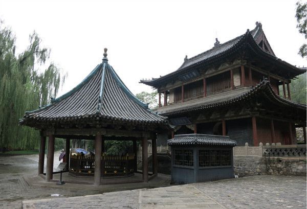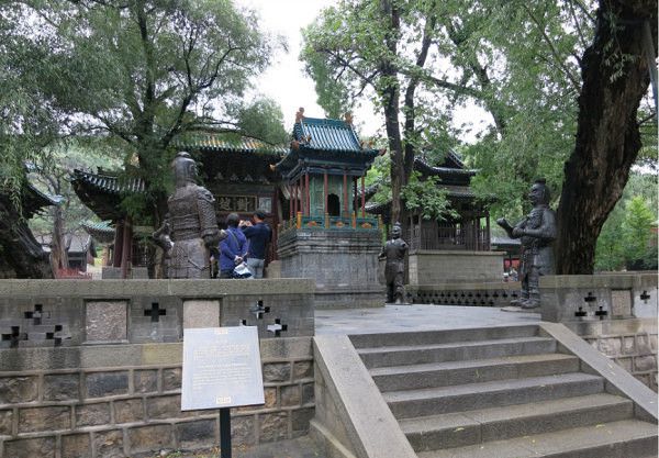 晋祠里一个重要的景点,金人台。四尊铁人,铸造技艺高超。下图为金人台。