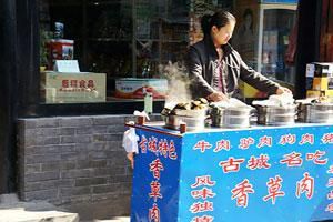 平遥民谣说“平遥三件宝,牛肉、碗饦儿、案案糕”。另一个版本则说“一是平遥牛肉,二是推光漆器,三是土山药粉”。看来,土特产中数牛肉最有名。