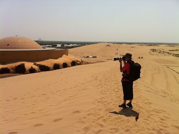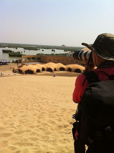 沙坡头全景呗。日落的时候其实是最美的,大漠孤烟直,长河落日圆,这诗词就是出自这里。想 想也是,日落的时候,大漠也有了,长河也有了,这里无风,再来缕烟,景象就在我脑子里成型了。老爸特别想看日落,一开始还想住在景区里!这是个什么概念, 一个房间550有木有,太不符合我背包客的规矩了!亏了我上厕所及时回来,不然他就订了!不过,没看到日落还是比较可惜的。因为进银川市里的末班车是6 点。
