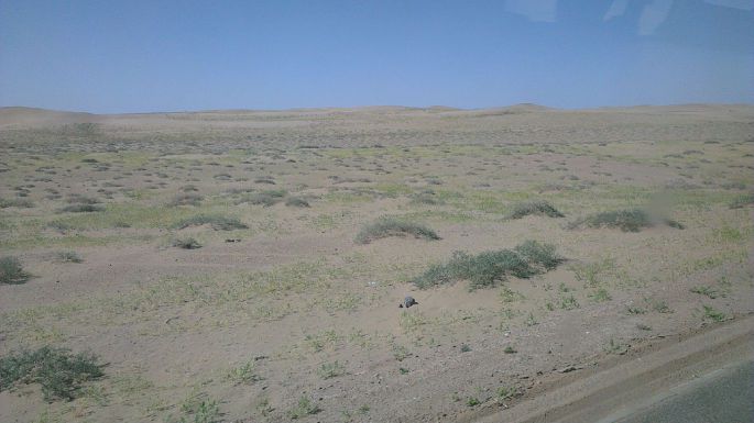 今天要赶往额济纳了,因为是12:00车票,所以也都不急,早上起来晃晃,又去吃饭,回来收拾一下,就走去旁边汽车站了。虽然不远,但是拖着行李走还是感觉有点距离的。到了以后看到有车就直接上了,他们的车貌似不是按车票时间上车,这辆车是加开的车,不是我们那辆12点开的车,不过反正能坐就坐了,早点到也不错。路上风光。