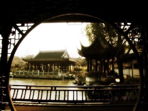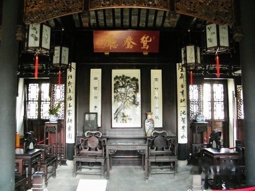 (退思园建于道光绪十一至十三年(1885-1887),设计袁龙,字东篱,诗文书画皆通。园主原安徽兵备道任兰生。取名退思,用《左传》句“进思尽忠,退思补故”意,兰生弟艾生哭兄诗有“题取退思期补过,平泉草木漫同看”句。园不足10亩,横向建造,不露富贵,亭、台、楼、阁、廊、坊、桥、榭、厅、堂、房、轩、琴、棋、书、画包孕其中。园西为宅、中为庭、东为园。内宅两侧石库门均用清水方砖砌成,同里的明清建筑中,仅此两扇尚属原物,余皆为近世复制。