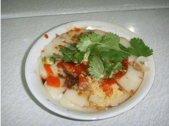 其做法是:将肉丝、荸荠丁、炸过碾碎的扁鱼或虾皮、米酱、白糖、地瓜粉、葱白、五香粉、食盐制成团状,放进碗里的米浆蒸煮而成。吃时要切开,放些沙茶酱、桔汁、蒜泥、萝卜酸、芫荽,吃起来柔韧芳香,美味可口。