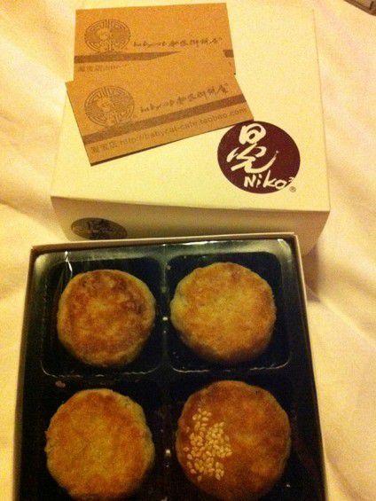 招牌就是绿豆沙、绿茶、椰蓉馅饼。不便宜,很小的8块是一盒,12块钱。主要是不好背回来,又不能压.