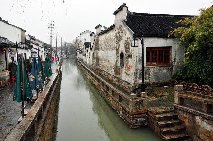平江路旁,小桥流水、粉墙黛瓦,显示出清秀淡雅的水乡风格