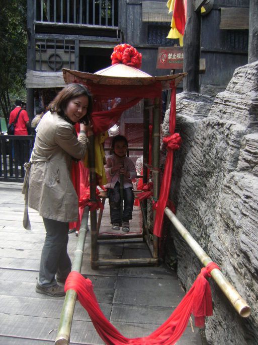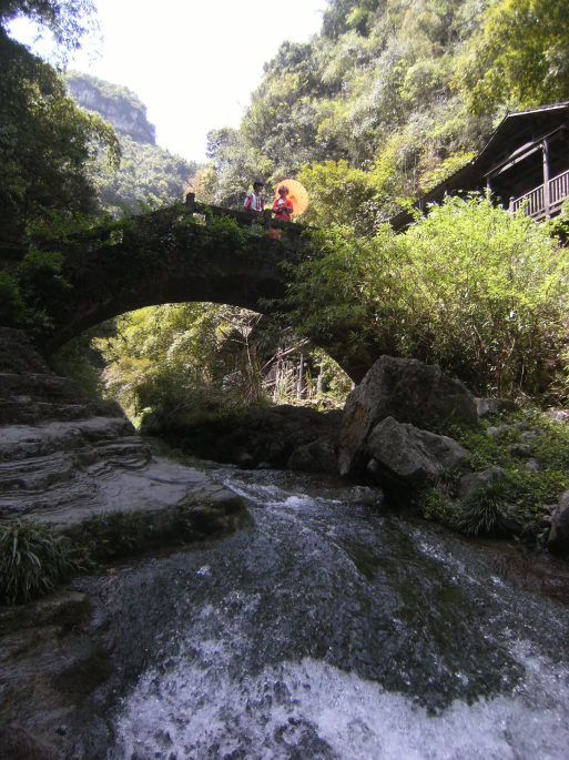 沿龙进溪而上,还见草庐弄琴、水边浣纱等,水中两三寸长的鱼真多,暖暖戏水、喂鱼,高兴坏了!