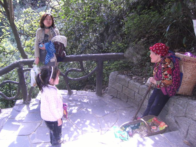 刚上山没多大会儿,见约摸60岁老妪背篓挎篮买东西。再上几步,惊叹一瞬间,只因为一个年纪快80岁的老奶奶,依然背篓挎篮,腰都弯了。她说自己有六个儿女,都不容易,自己主要不靠他们,靠自己,国家还有老人补助。肃然起敬,向老人,也向着生命!