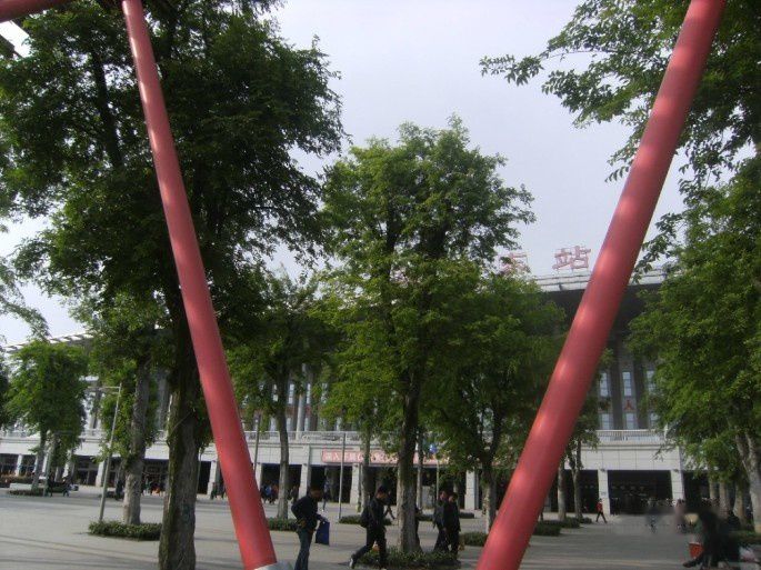 出大坝旅游区,乘车赶往宜昌东站。东站按飞机场标准搞的,的确不一样。